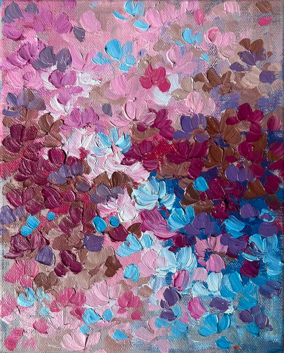 "All Of My Love" swirls with deep purples and electric blues, evoking a sense of longing wrapped in serenity. The layered brushstrokes pulse like emotion itself—tender, chaotic, and infinite.