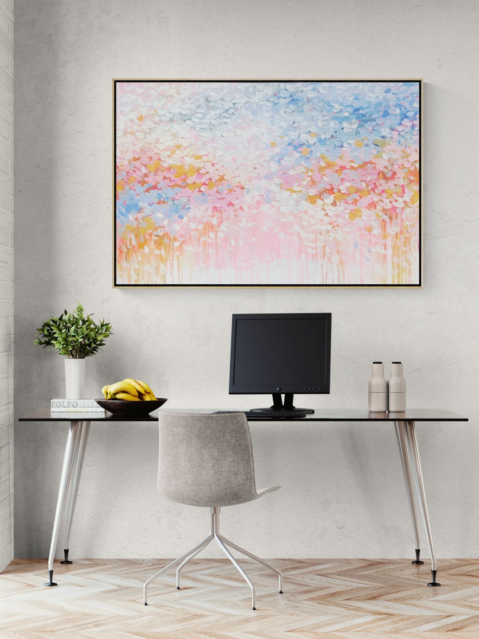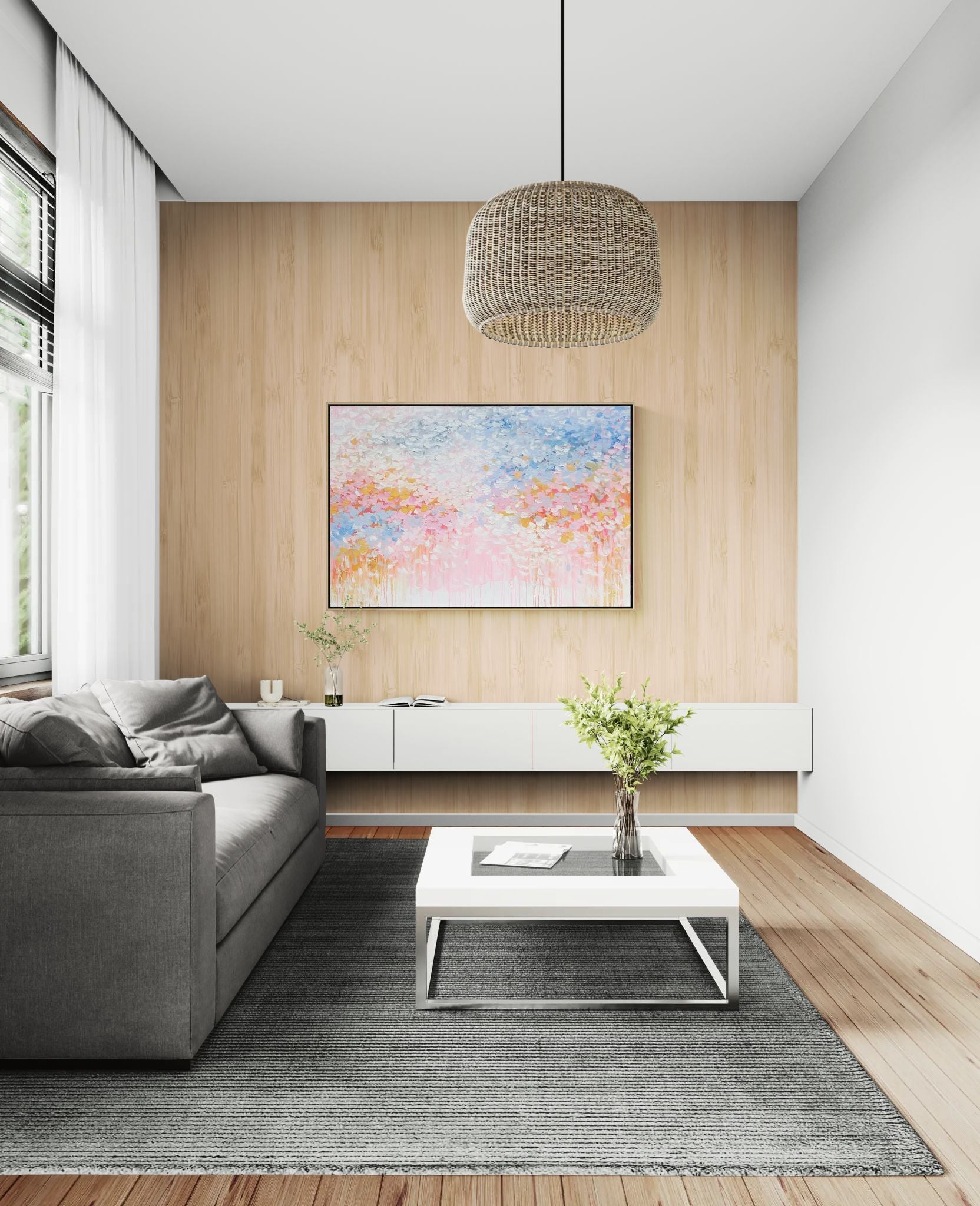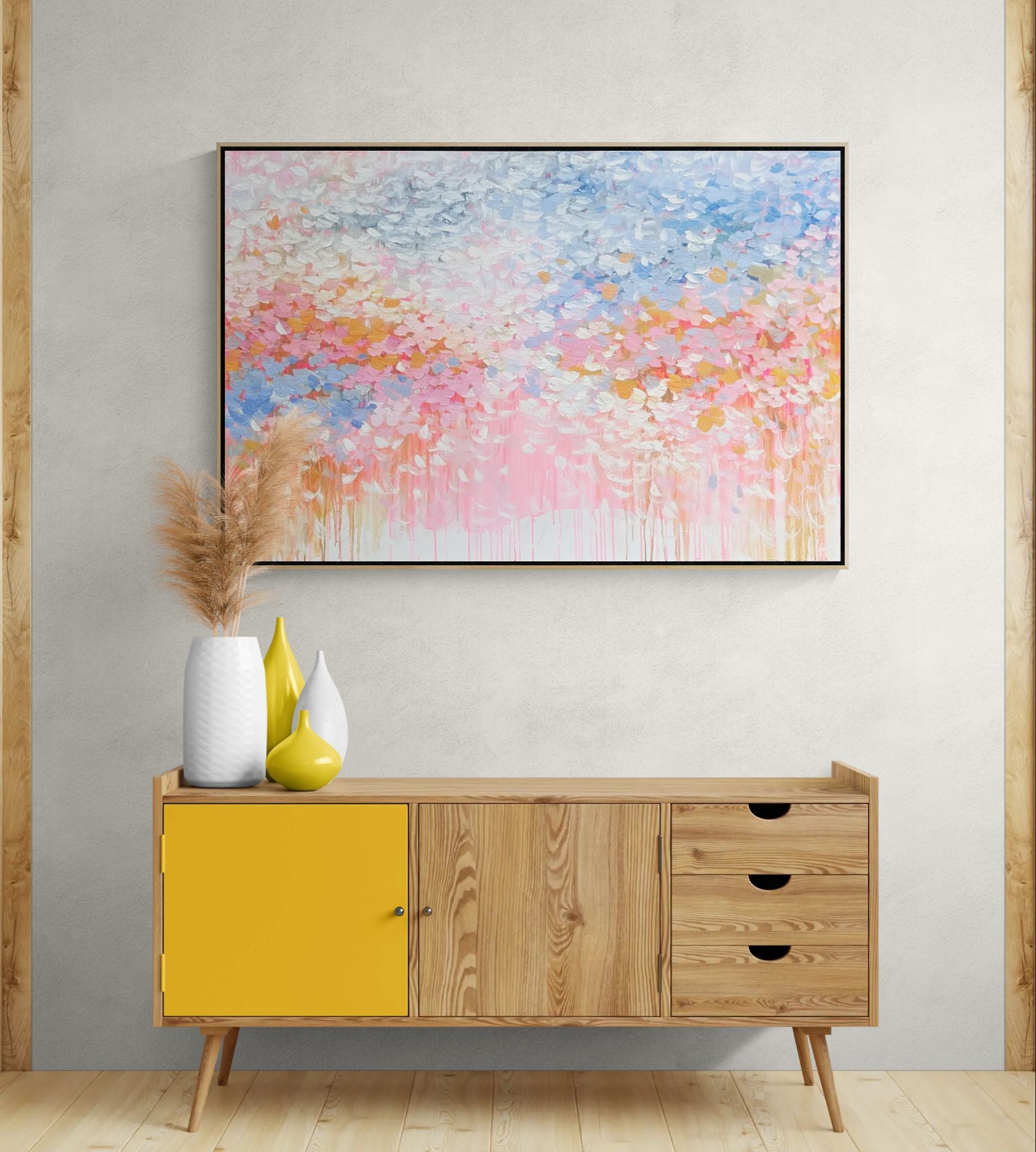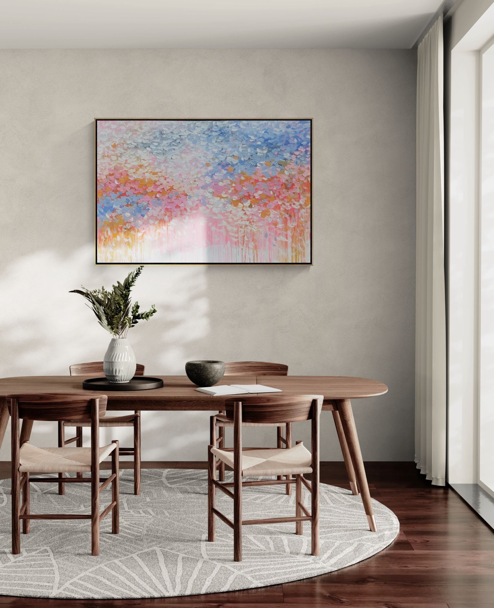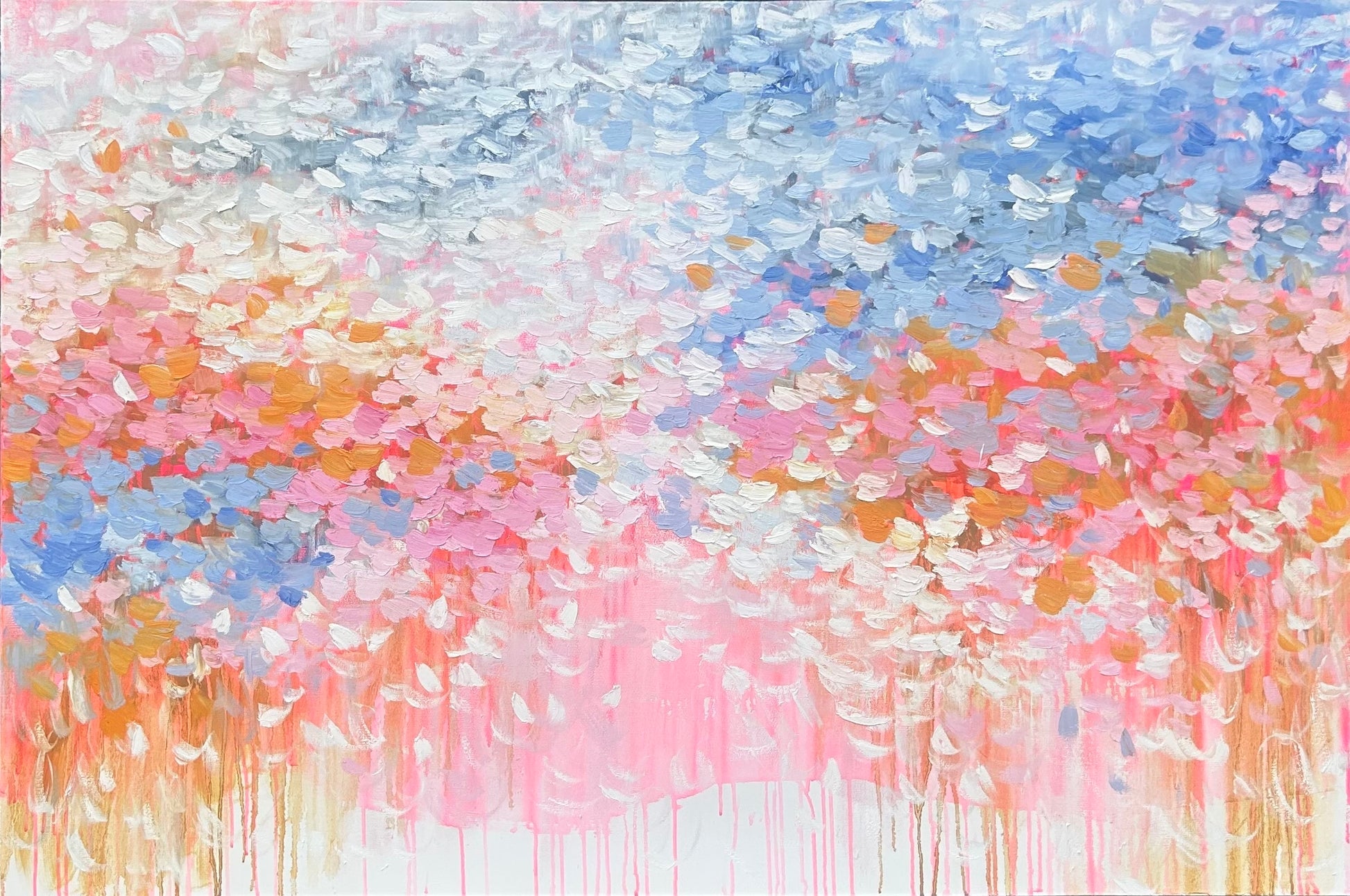 “Every Day Is a Blessing” unfolds in soft pinks, airy blues, and gentle whites that drift together like quiet morning light. The palette stays intentionally delicate, creating a sense of calm gratitude that feels both intimate and expansive. Subtle transitions between colors evoke a peaceful, reflective rhythm that lingers long after you look away.