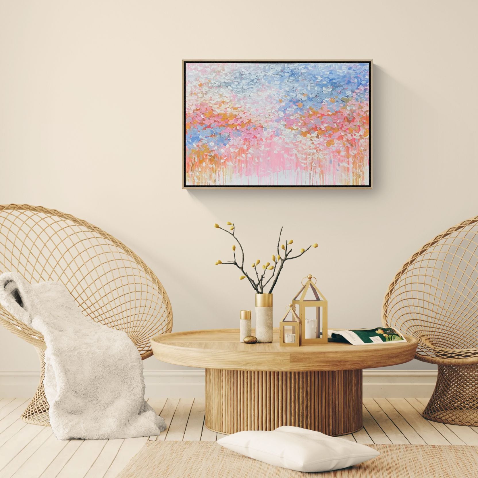 This artwork comes with an external oak frame. Please allow up to 2-4 weeks for delivery.