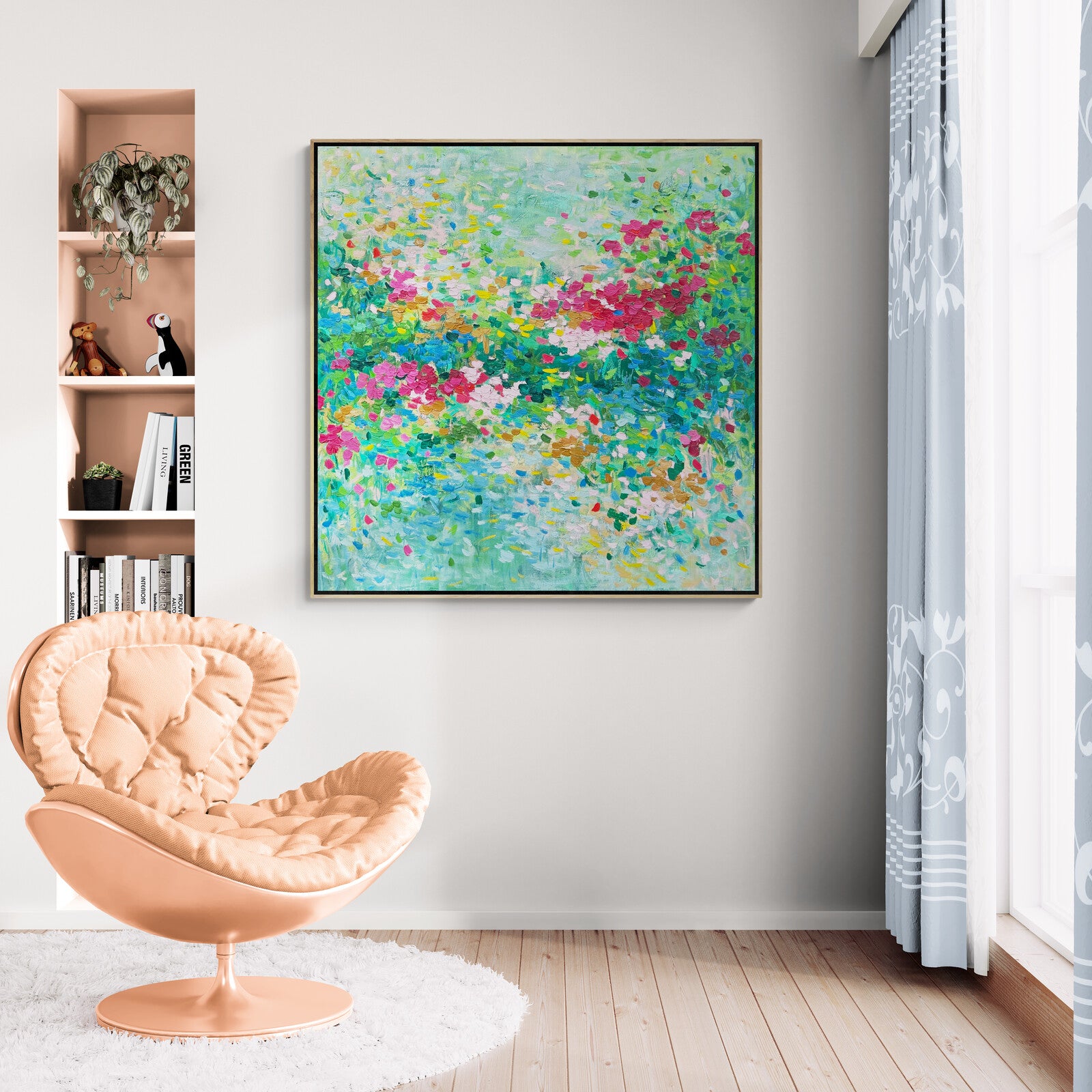 This artwork comes with an external oak frame. Please allow up to 2-4 weeks for delivery.