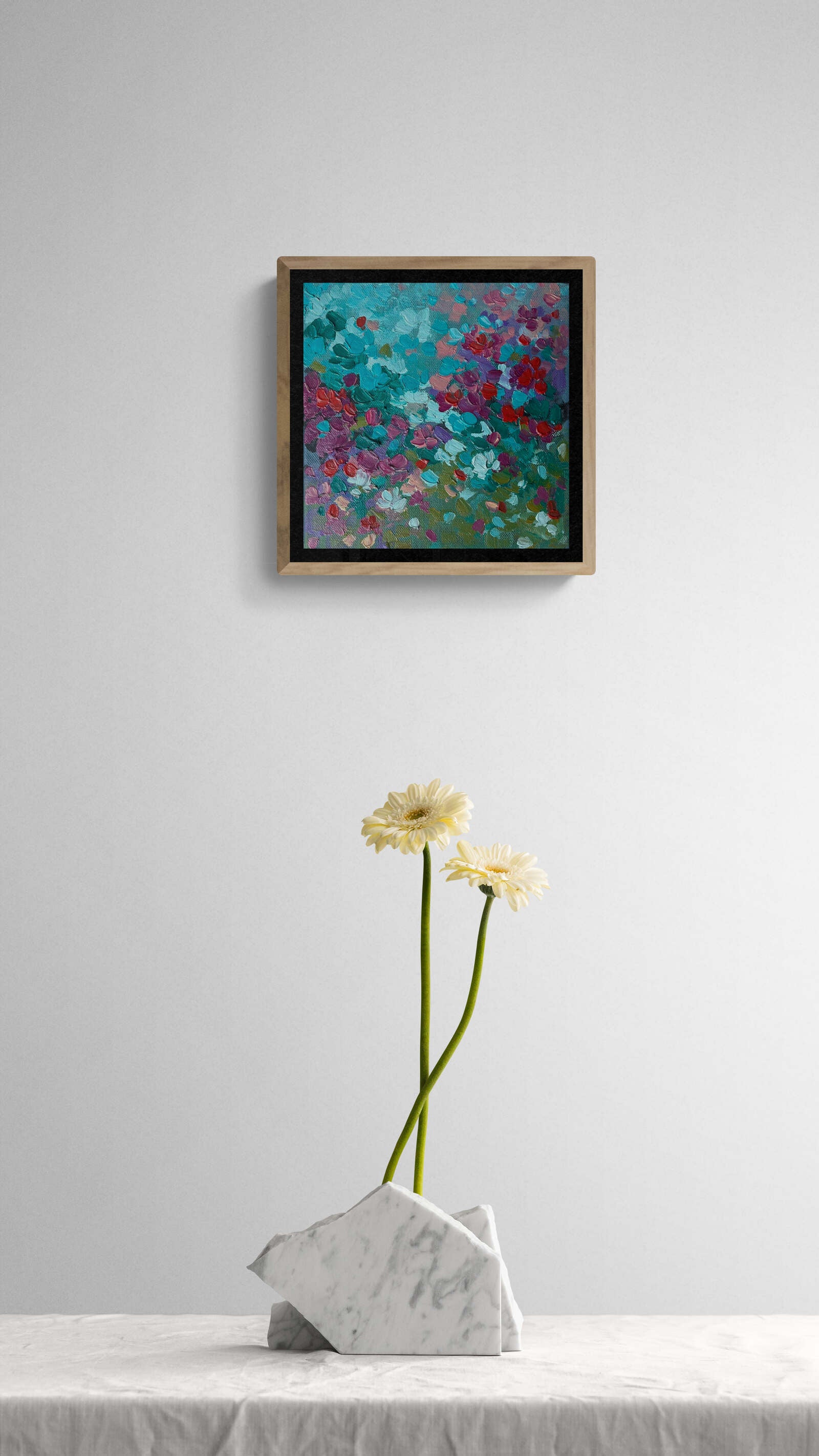 This artwork comes with an external oak frame. Please allow up to 2-4 weeks for delivery.