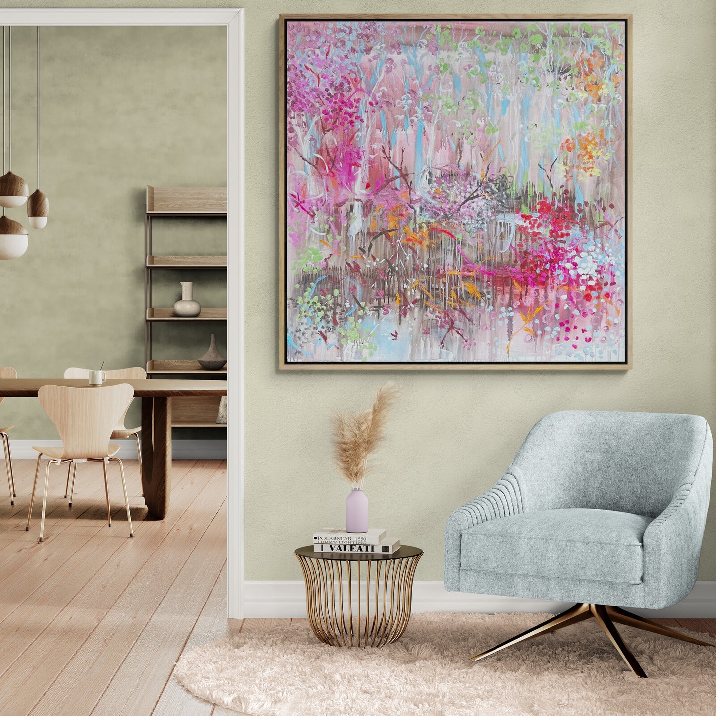 This artwork comes with an external oak frame. Please allow up to 2-4 weeks for delivery.