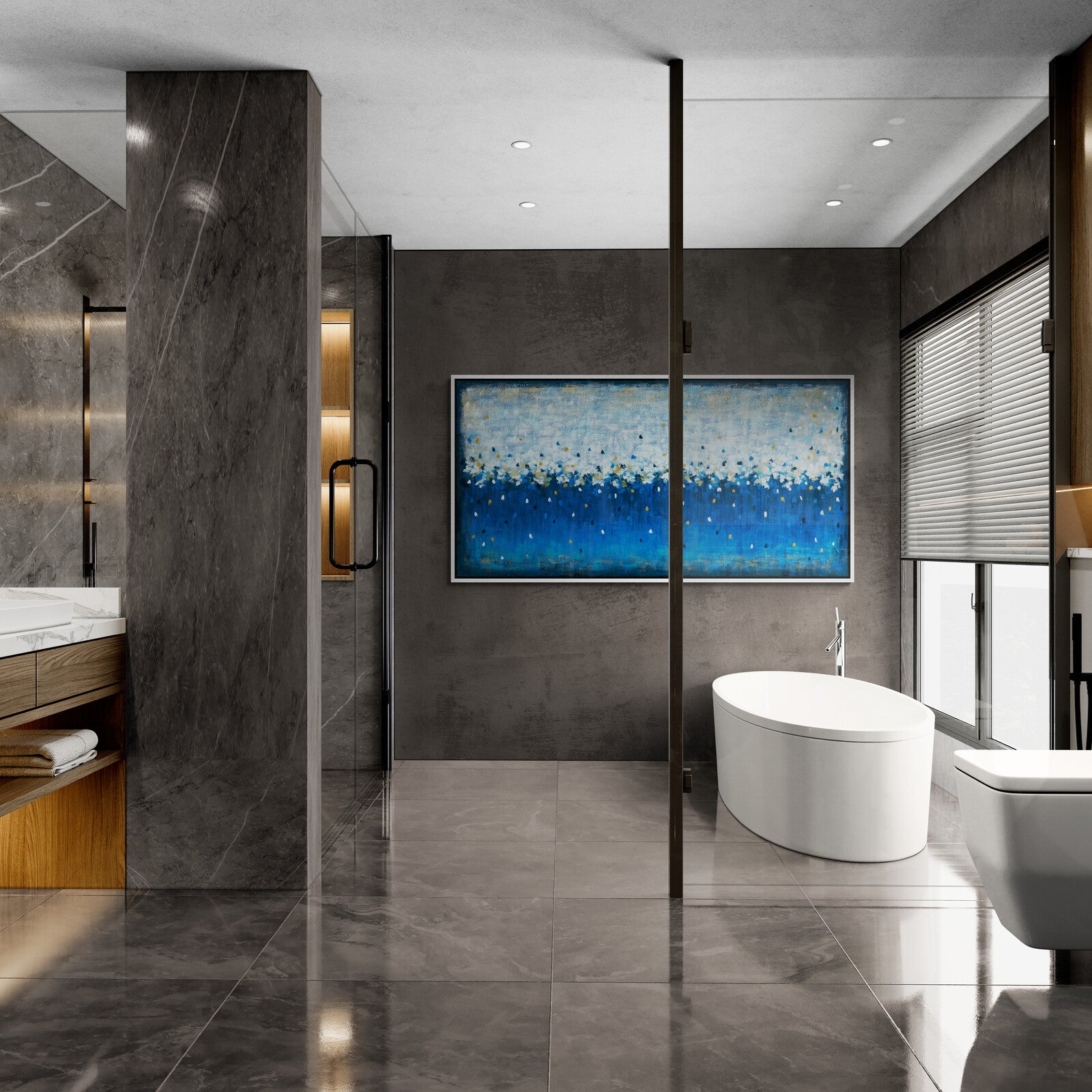 This piece has a touch of tropical waters with the turquoise blues where you find an abundance of life.