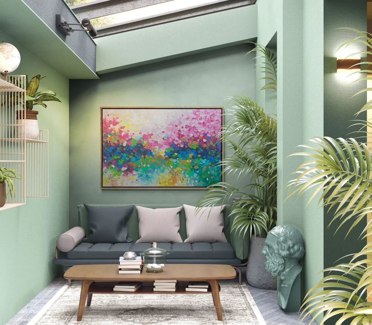 This artwork comes with an external oak frame. Please allow up to 2-4 weeks for delivery.