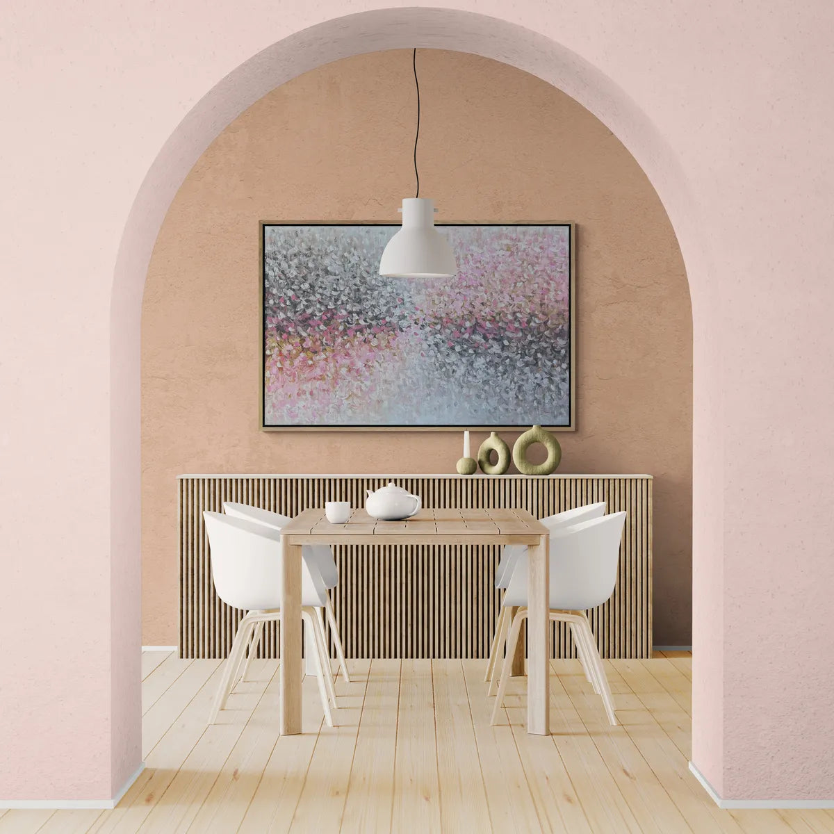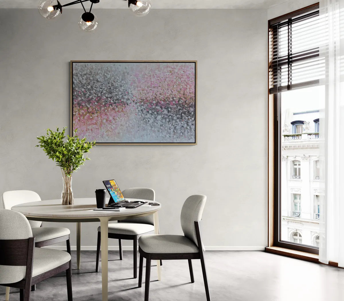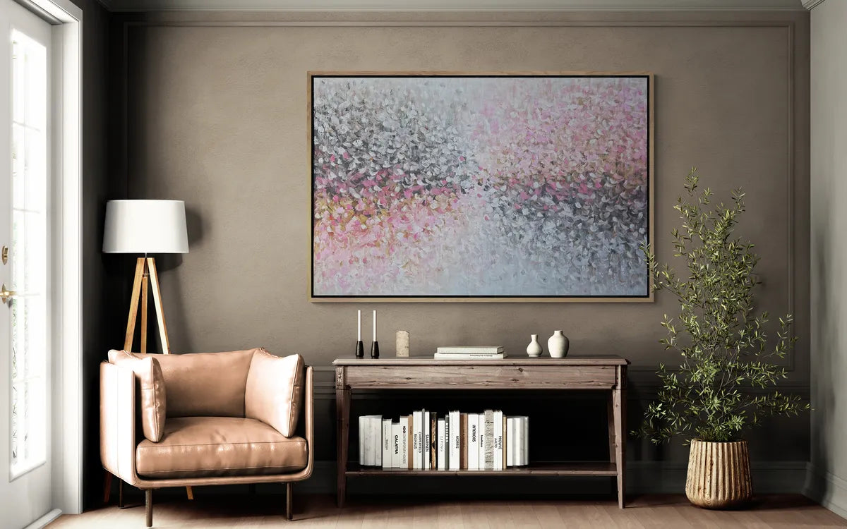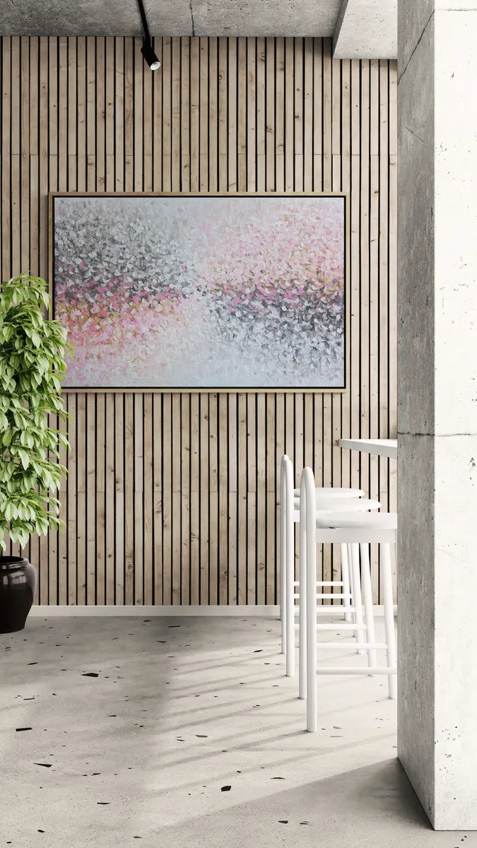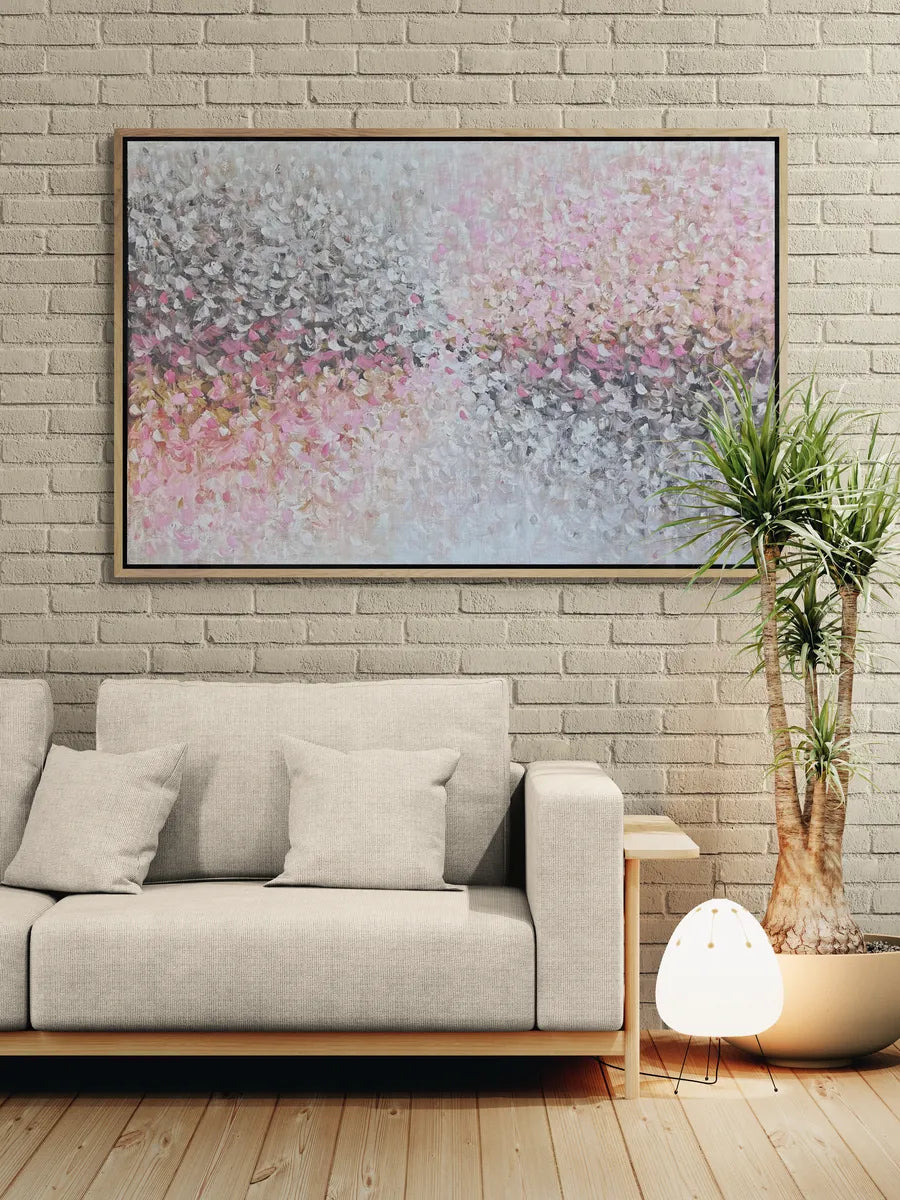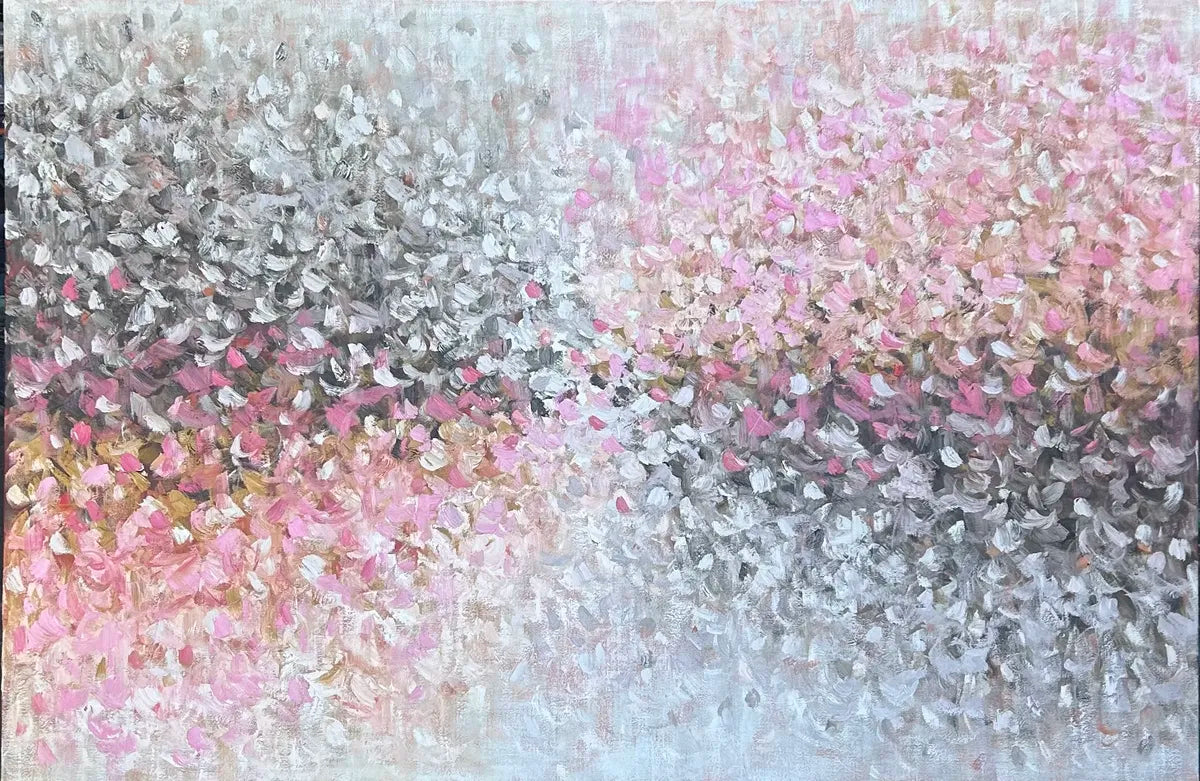 'Forever Loved' is a tender interplay of soft blues and gentle pinks, where layered hues drift and merge like memories held close. The painting carries a quiet depth, inviting the viewer into an emotional landscape of warmth, longing, and eternal connection. Each brushstroke feels like a whisper of love that never fades.