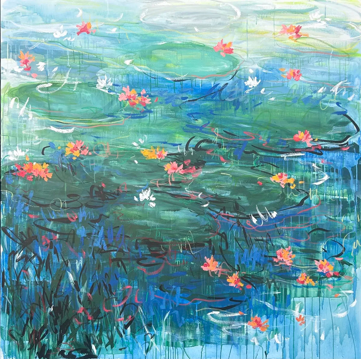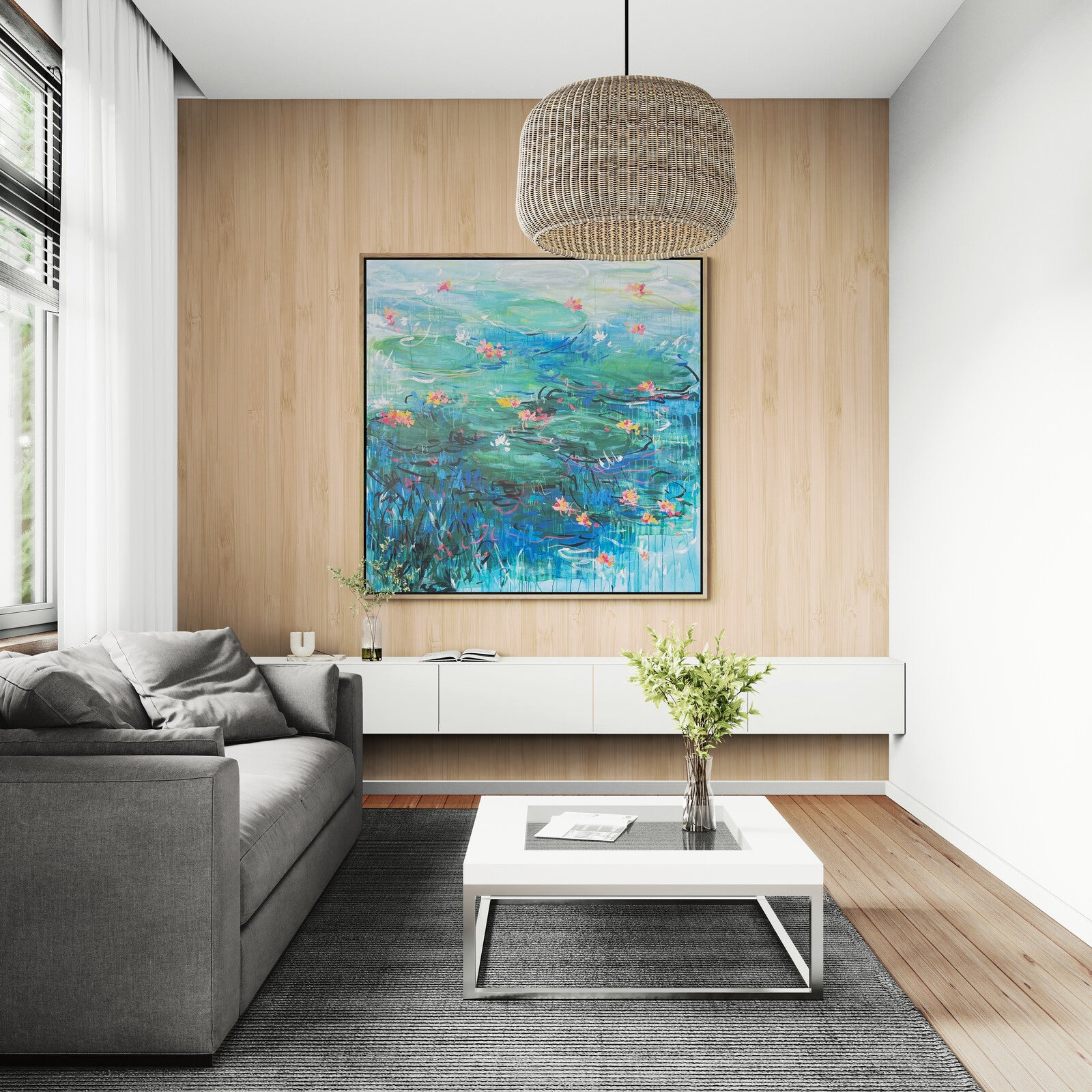 The Peace Within is a meditation on stillness — an invitation to pause and reconnect with the quiet truths that live beneath the surface of our daily noise. Gentle layers of blue and green flow together like shifting thoughts, while soft blooms of pink and white emerge as symbols of renewal and inner calm. Each brushstroke becomes a breath — a moment of surrender and serenity — reminding us that peace is not something we find, but something we uncover within ourselves.