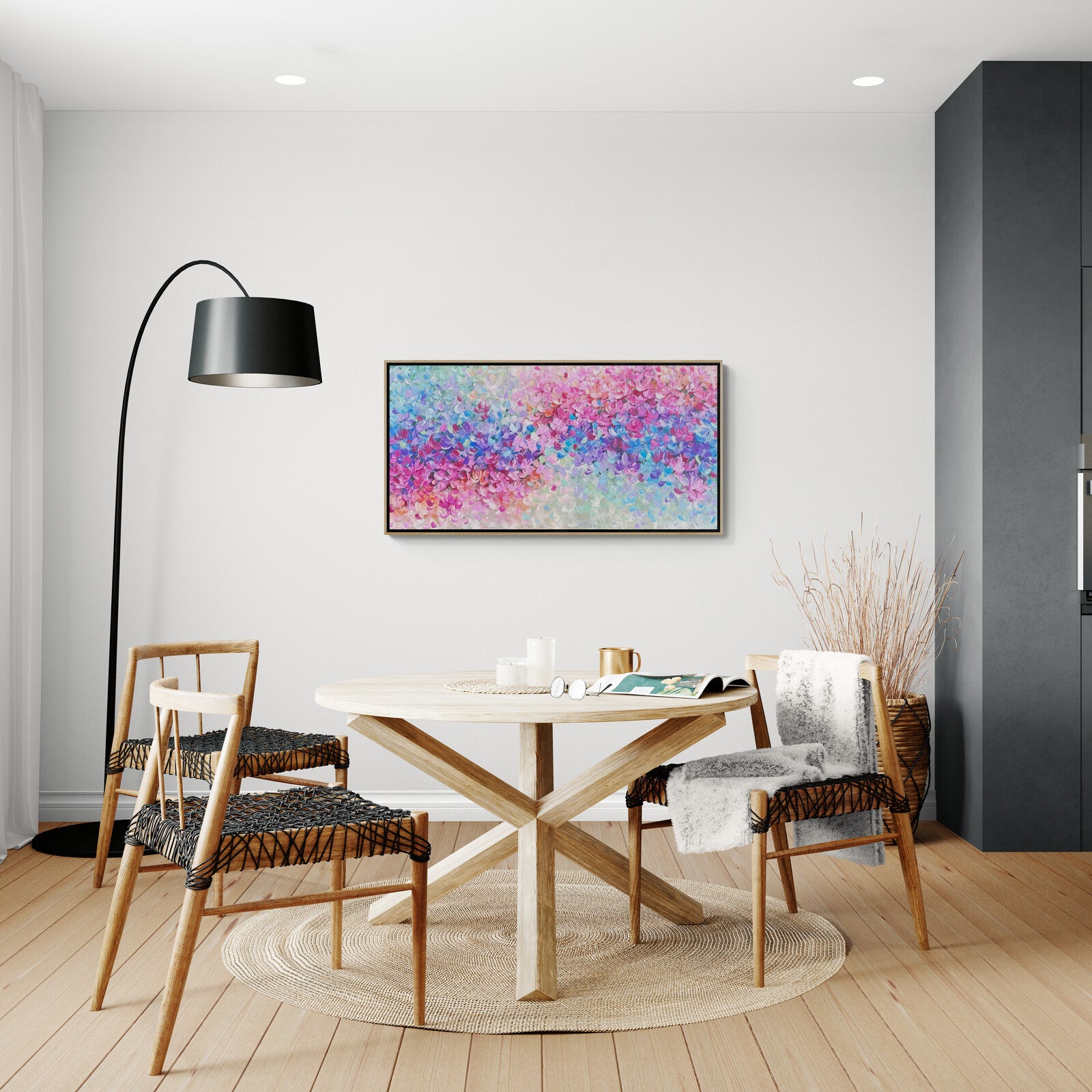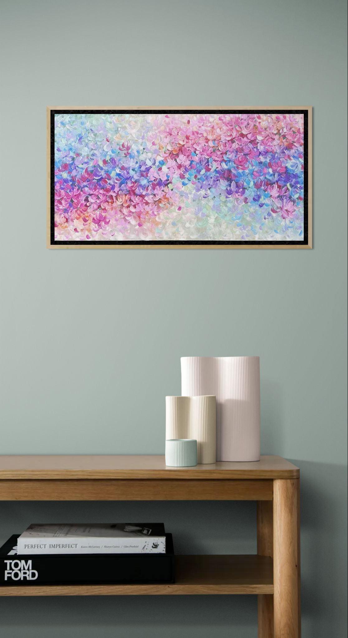 Belinda Nadwie's "When I Saw You Underneath The Cherry Blossom" is a romantic and emotionally rich abstract painting inspired by the fleeting beauty of flowering trees. With soft, expressive brushwork and a palette that likely includes blush pinks, gentle whites, and earthy tones, the piece evokes a moment of connection and wonder beneath nature’s delicate canopy. Nadwie’s intuitive style transforms this scene into a dreamlike celebration of love and presence.