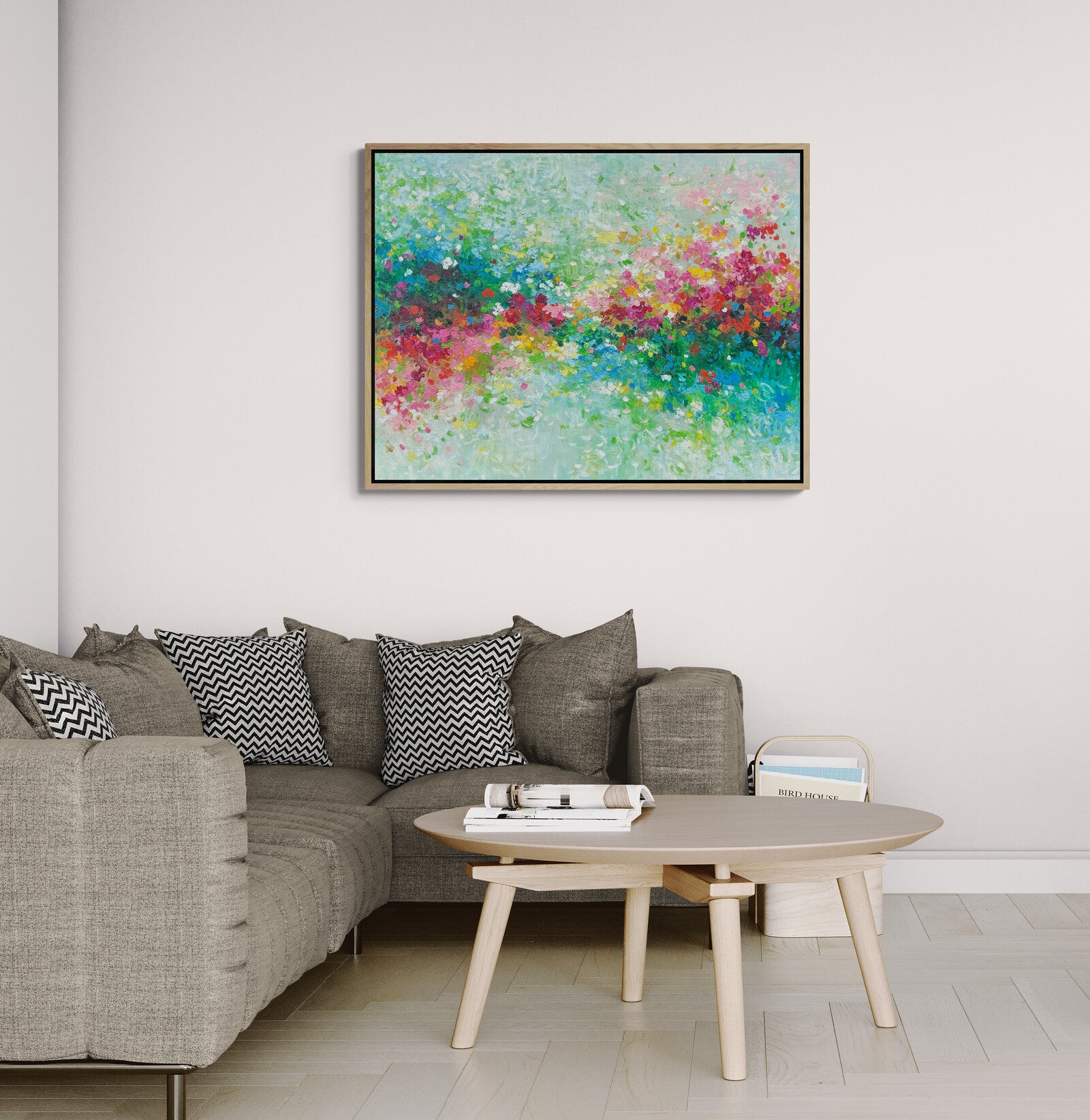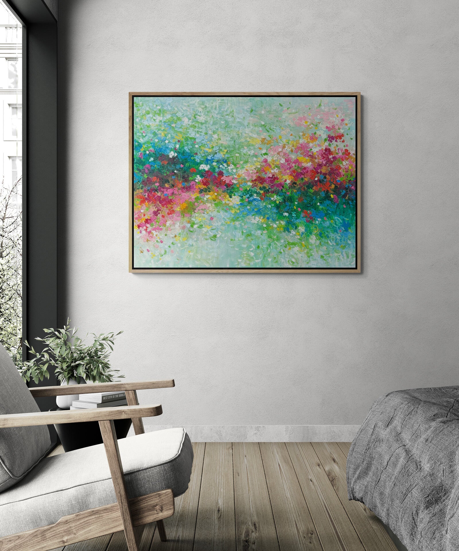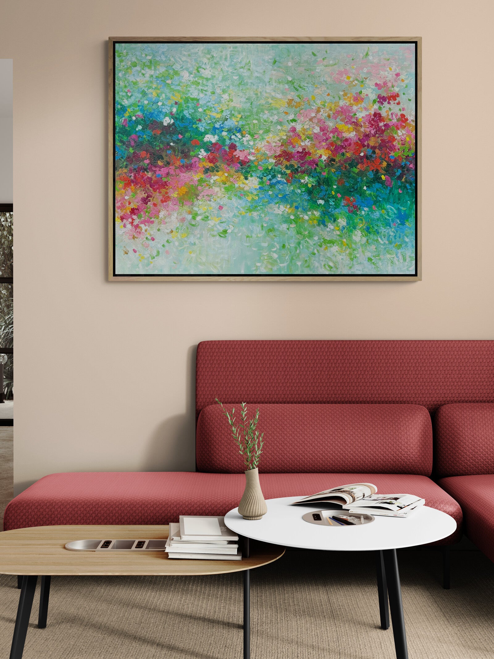 This artwork comes with an external oak frame. Please allow up to 2-4 weeks for delivery.