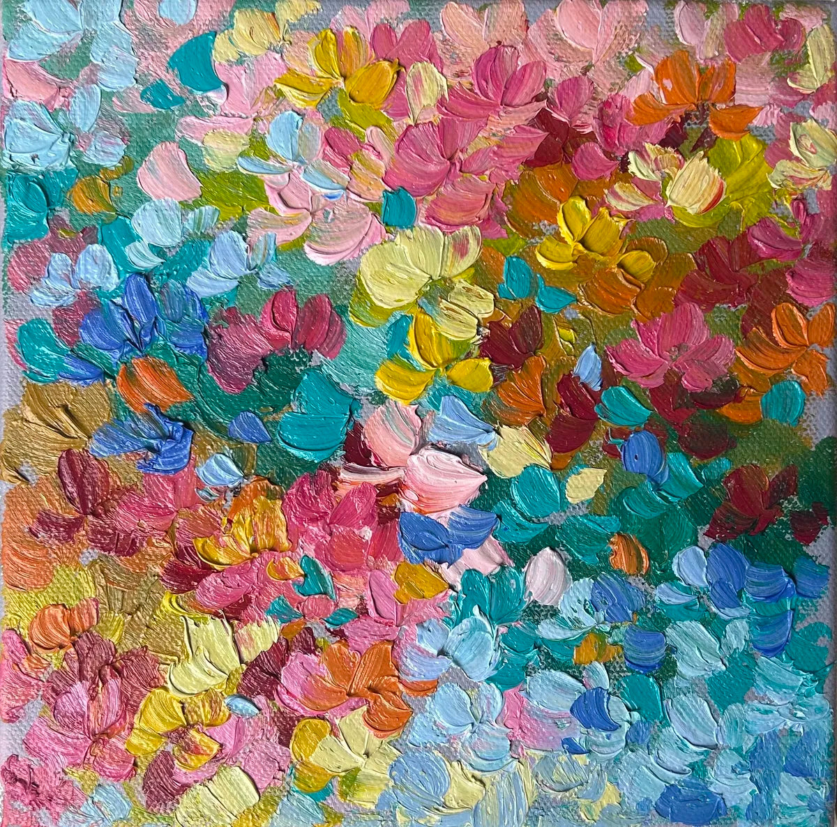 "You Are The Sunshine" bursts with radiant hues and swirling forms, evoking the warmth and vitality of sunlight dancing across a dreamscape. Its vibrant palette and fluid composition suggest joy, energy, and an emotional glow that feels both intimate and expansive.