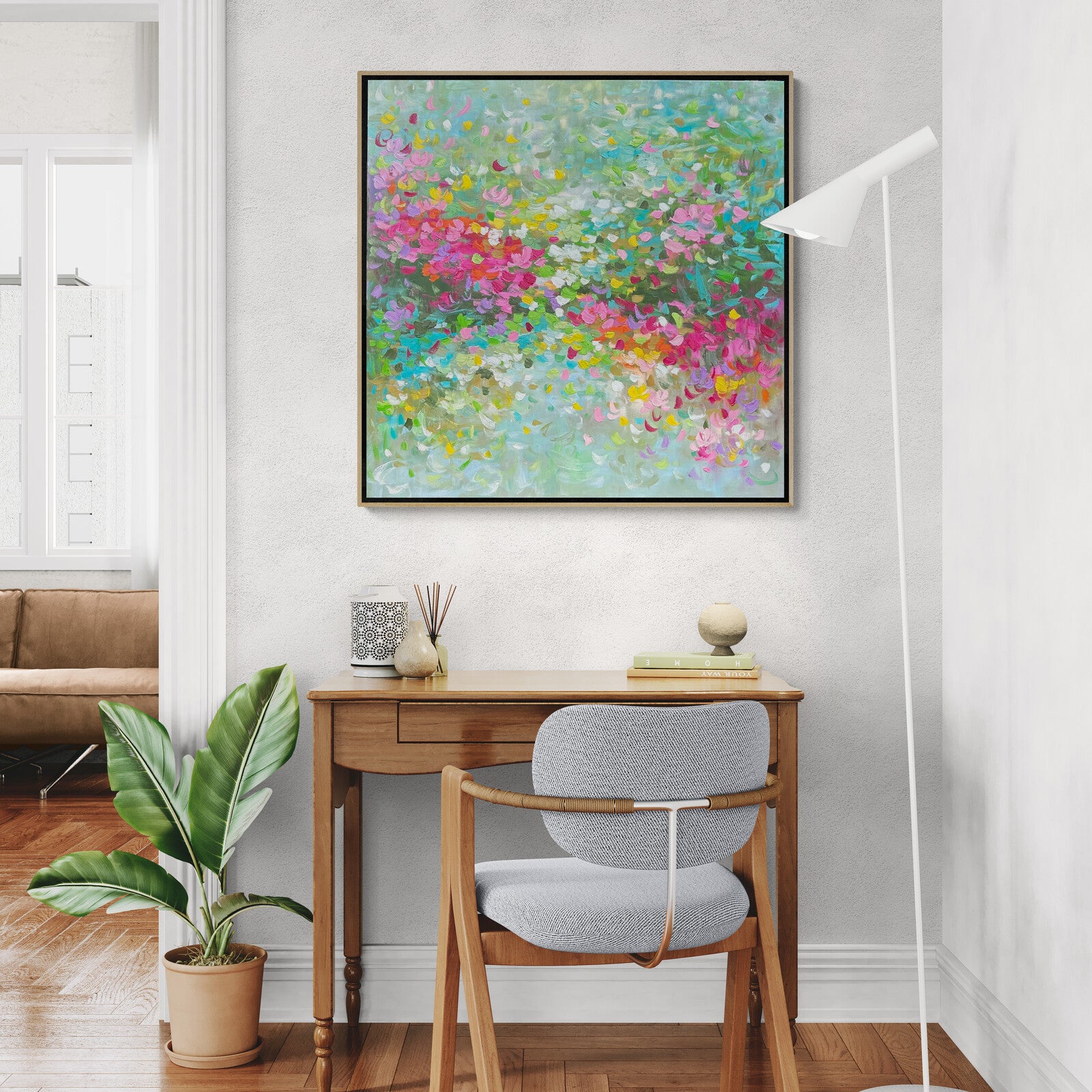 Belinda Nadwie’s abstract painting 'Your Heart and My Heart' radiates emotional warmth and vibrant energy through its expressive use of color and texture. The piece bursts with spring-like hues and layered brushwork, conveying a sense of love, positivity, and spiritual connection. Nadwie’s intuitive style invites viewers into a shared emotional landscape, where hearts resonate in harmony